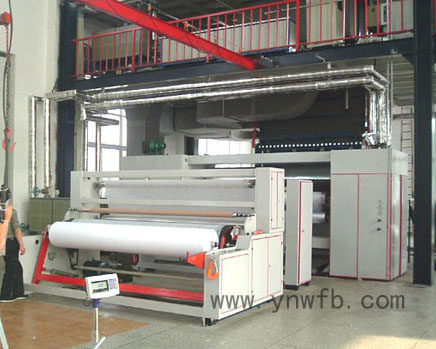 紡粘無紡布生產線經過了設計者多年的實踐理論總結,風道采用共同的狹縫式整體牽伸設計,保證纖網鋪網平均,纖維細度到達3旦左右,產品的縱橫強力到達或超越國度規范。配置先進的觸摸屏控制自動跟蹤、超溫超壓報警系統。軋機采用直活動力,硬齒面減速箱,高穩定性的萬向聯軸節傳動,軸承采用油冷卻超溫缺油報警系統,輥面采用周邊打孔技術來保證整體溫度的分歧。箱體設計先進,流體分配均布來保證廢品的不時絲、不并絲、無破洞,從而進步產品的合格率。而且紡粘無紡布生產線操作起來也比較簡單,使用者很容易上手。